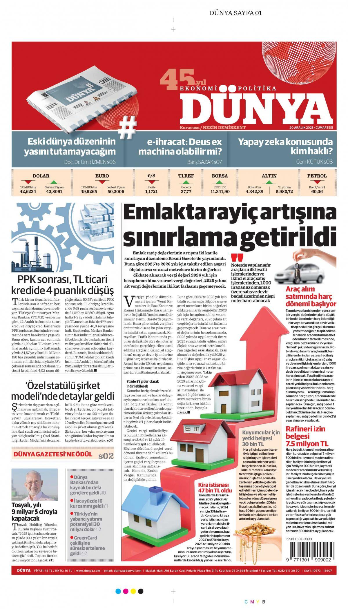 Dünya Gazetesi 21 Aralık 2025 Günü Manşeti