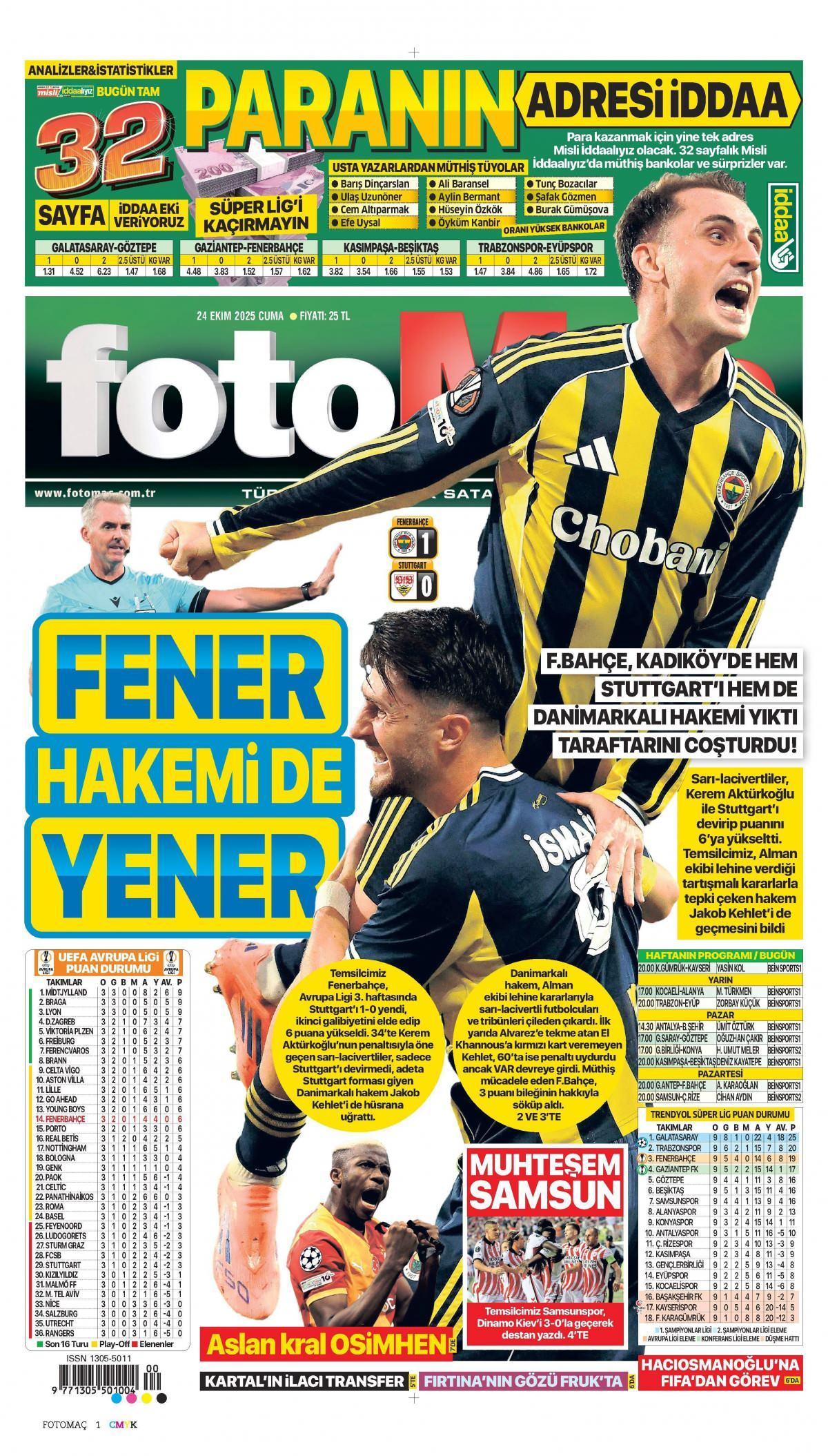 Fotomaç Gazetesi 24 Ekim 2025 Günü Manşeti