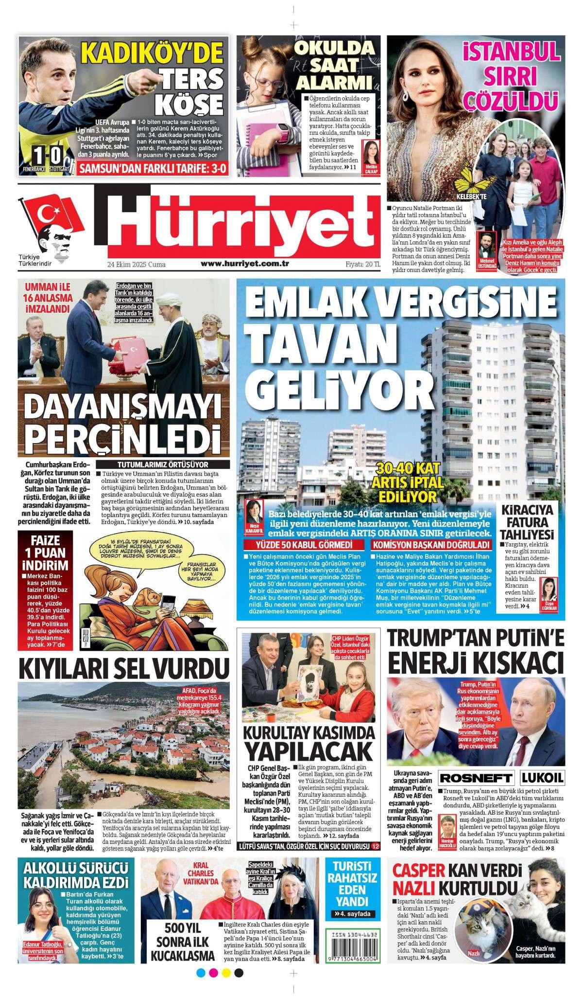 Hürriyet Gazetesi 24 Ekim 2025 Günü Manşeti