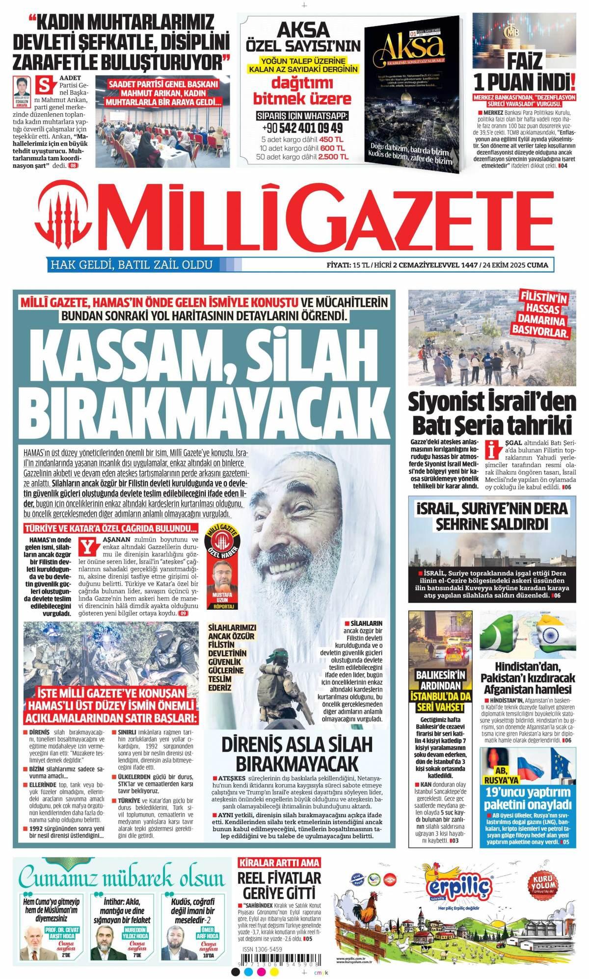 Milli Gazetesi 24 Ekim 2025 Günü Manşeti