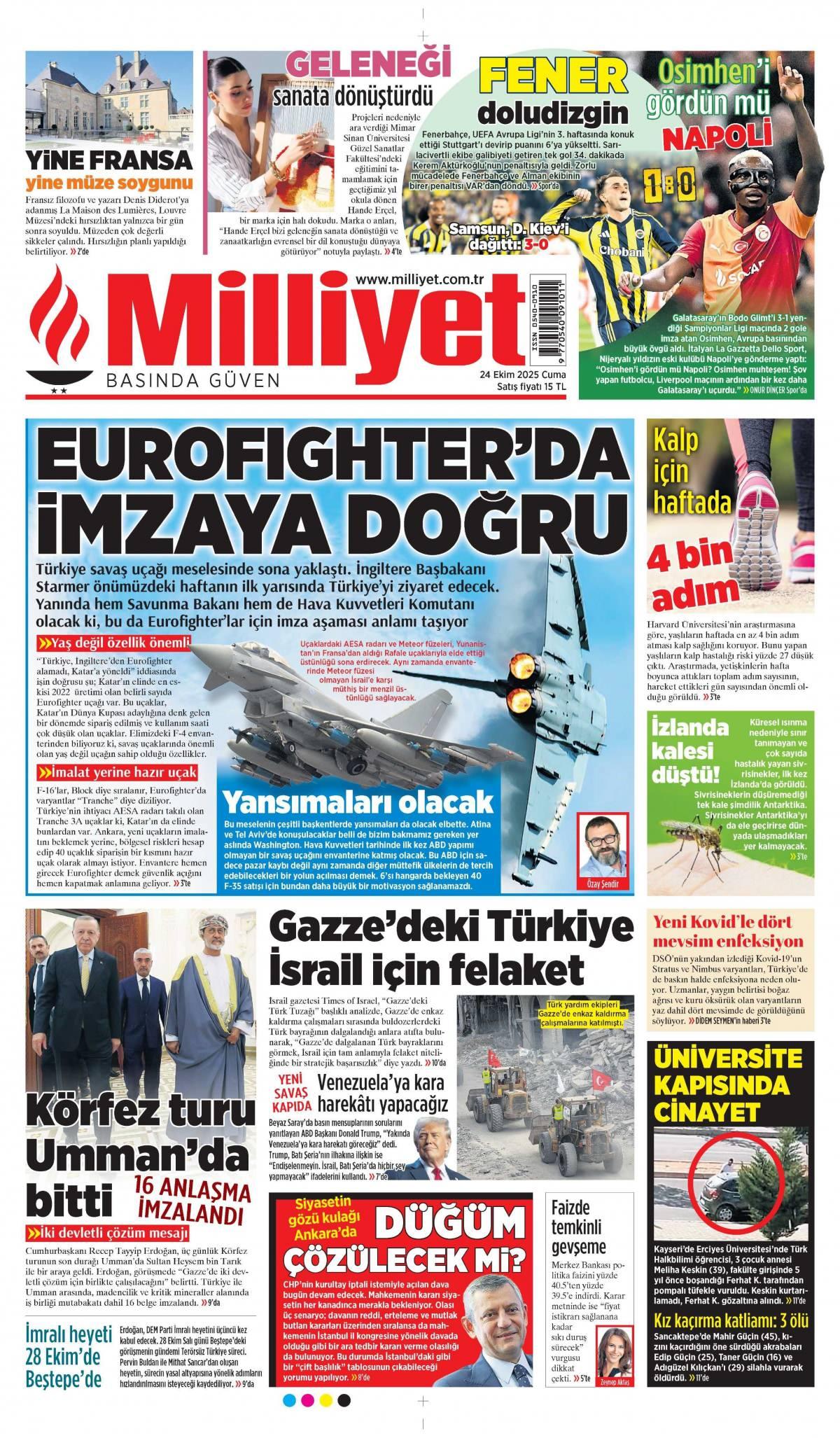 Milliyet Gazetesi 24 Ekim 2025 Günü Manşeti