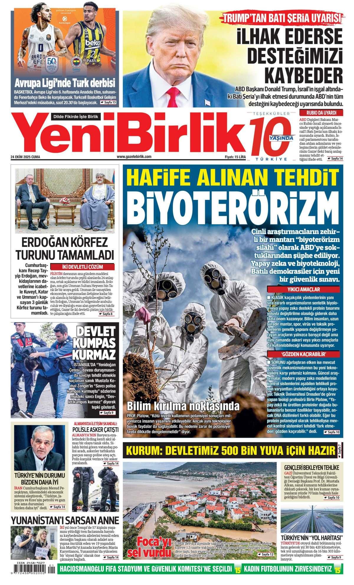 Yeni Birlik Gazetesi 24 Ekim 2025 Günü Manşeti