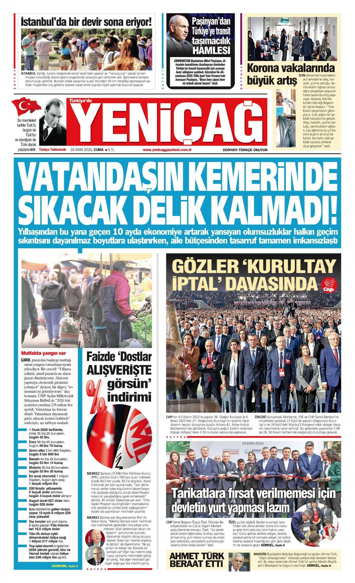 Yeni Çağ Gazetesi 24 Ekim 2025 Günü Manşeti